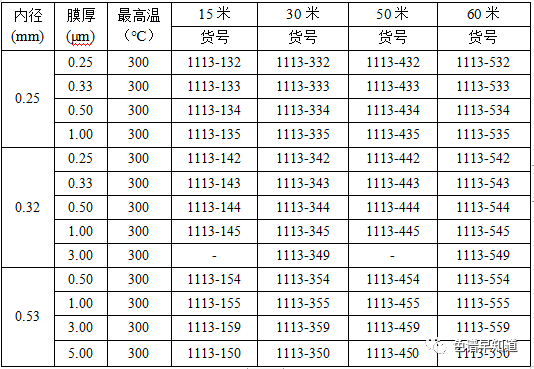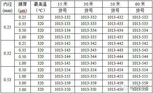 柱长:30m 内径:0.32mm 膜厚:0.5um