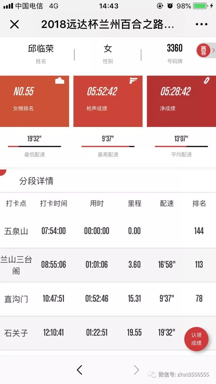 15日凌晨的雨水,虽让兰州的气温变的有些寒冷,但这影响不了邱临荣想要去征服兰州山区的决心;她在享受赛事带来的激情与快乐的同时,更领略到了兰州的别样风情。平时的她,利落的短发倍显活泼萌呆,开朗的性格也备受旁人喜爱,踏实认真、努力拼搏的特性不仅体现在生活中,更在工作中展露无疑。在此次竞技的舞台上,她展现了坚韧顽强的精神和青春的热情,不仅坚持跑到终点,更取得了不错的成绩,为自己的生命旅途留下了美好的青春记忆。努力、健康、快乐,是激扬青春美好的模样,人生更是一场征服自我的战斗,她是我们的榜样,也是我们的骄傲。